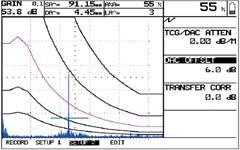 l40 DB动态多曲线DAC/TCG选项可修正材料衰减和波形发散引起的距离/振幅变化,并能单独编辑或插入纪录的回波。一次最多可在屏幕上画出4条DAC曲线,从而在原始纪录的DAC曲线外显示+/- dB曲线。可纪录多达16个数据点,每微秒最大的曲线斜度为12dB。符合或超过了TCG的工业要求。